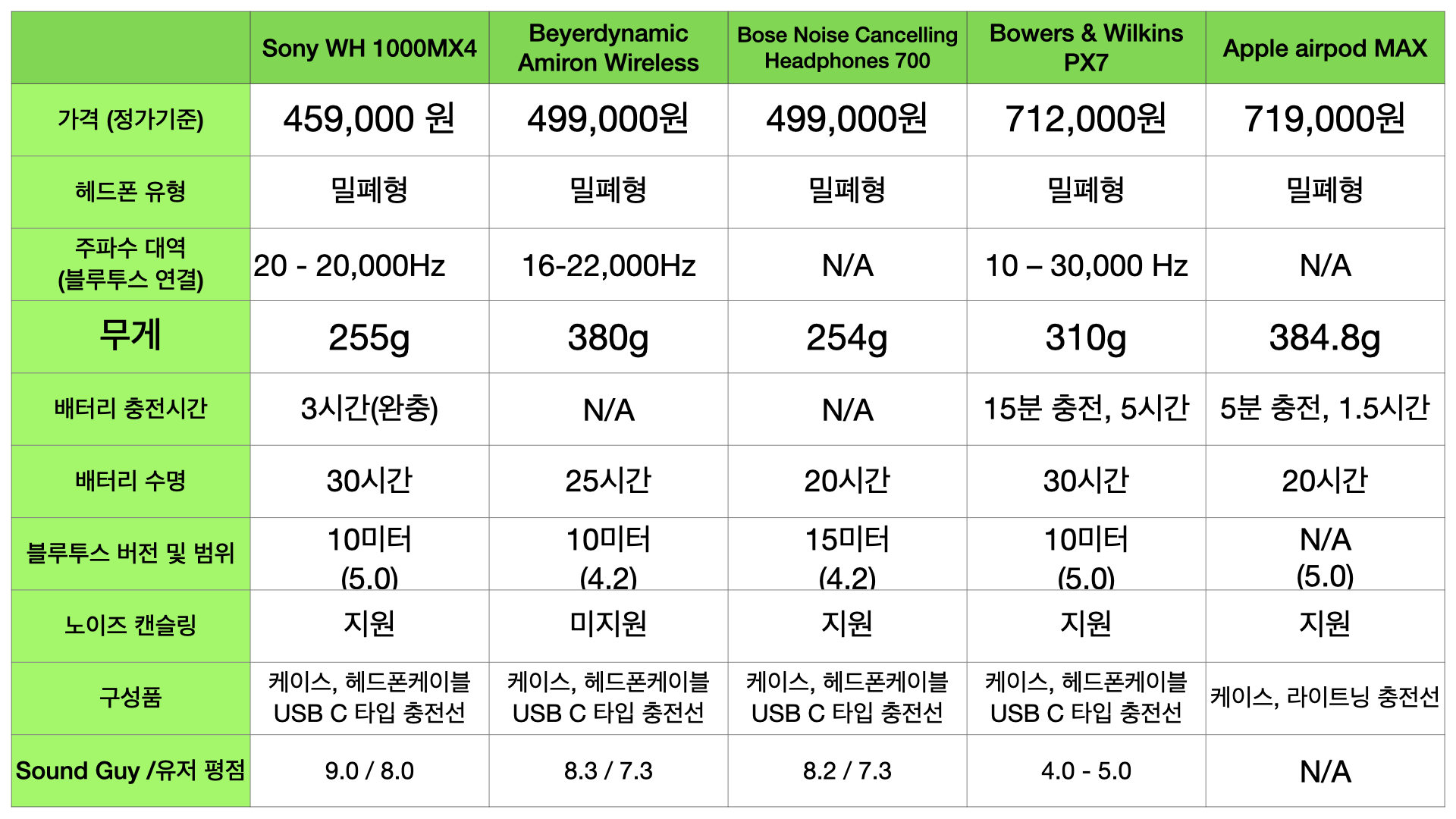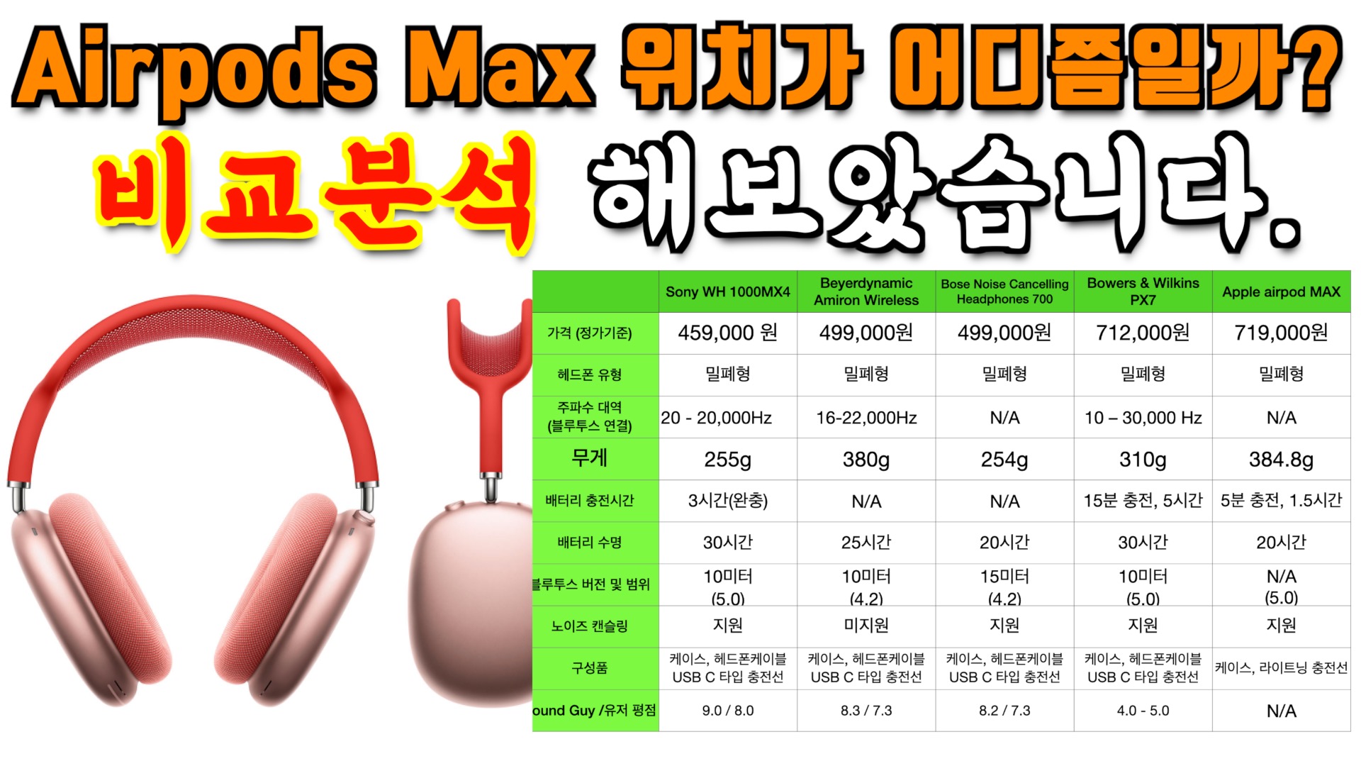 비교군은 2018~2020년 사이에 출시된 블루투스 헤드폰만을 대상으로 했습니다.