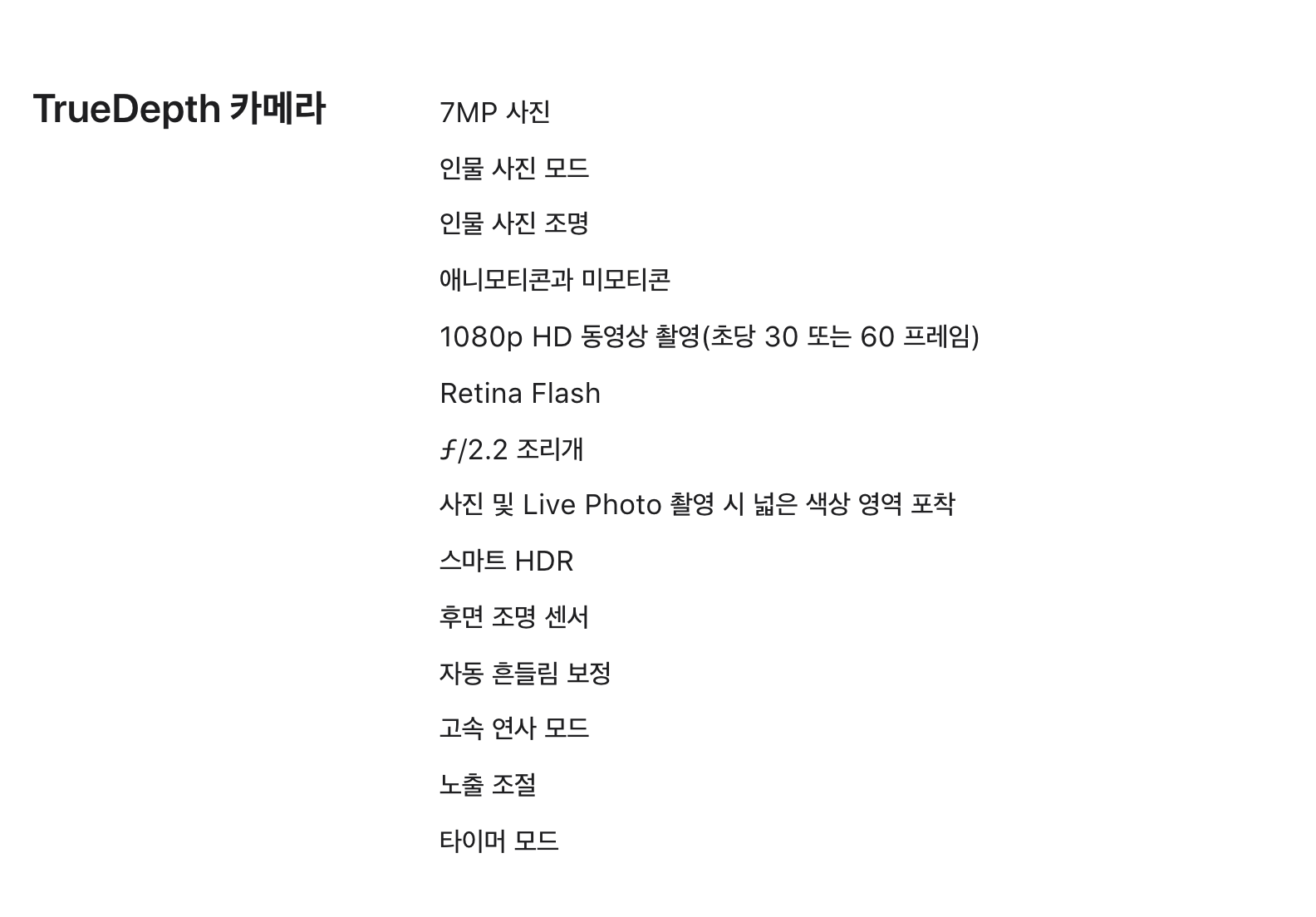 카메라도 엘이디 조명을 빼버리고 전면 카메라는 터치아이디로 돌아오면서 셀카모드를 찍을 수 없게 되었습니다.